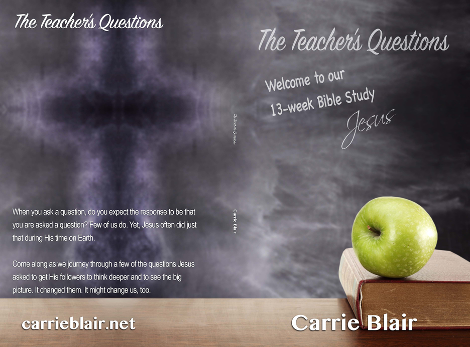 The first title was “The Teacher’s Questions”. The front cover consisted of a blackboard with the title and the phrase “Welcome to our 13-week Bible Study” with Jesus’ supposed signature below that, all written in chalk. In the foreground was a desk with a Bible. Atop the Bible was an apple. As my graphic design guru attempted to widen the chalkboard image to make the back cover, it created an amazing image of a cross. I felt like the effort was anointed. However, I wasn’t captivated by the cover, as I had been on previous books.